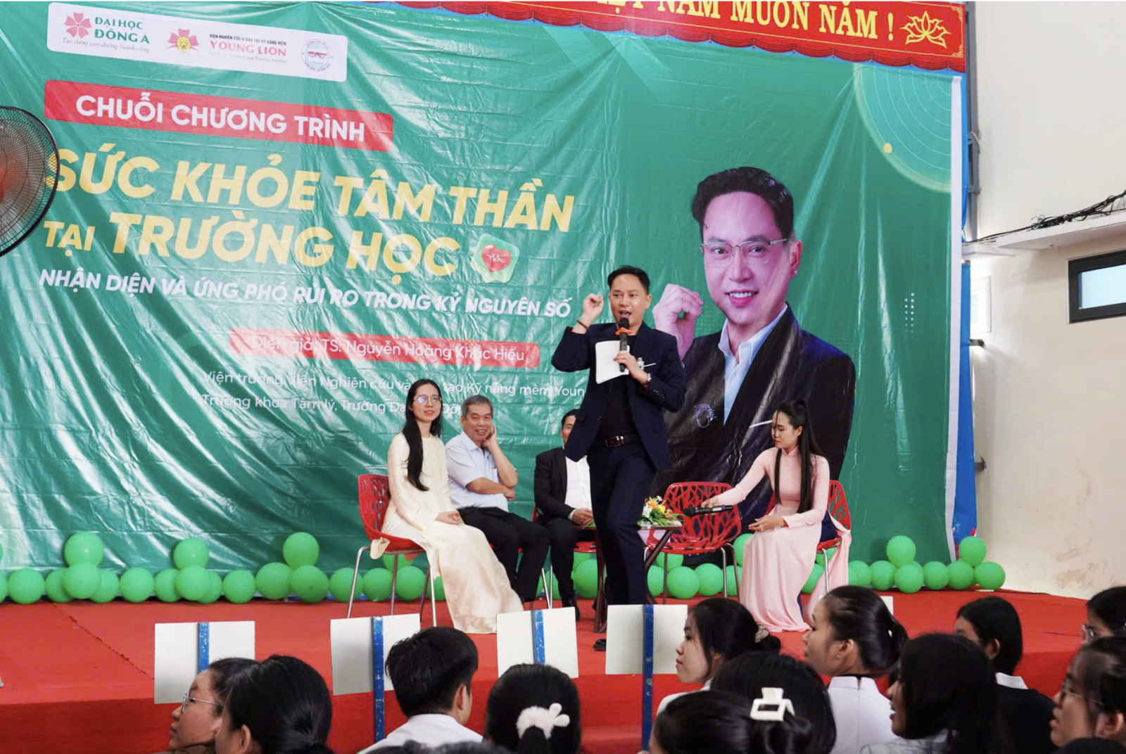 Theo đó, thông qua hình thức hỏi đáp trực tiếp đầy cởi mở và gần gũi, TS. tâm lí Nguyễn Hoàng Khắc Hiếu – Viện trưởng Viện Nghiên cứu và đào tạo kỹ năng mềm Young Lion trường Đại học Đông Á cùng các chuyên gia đã cùng đối thoại, lắng nghe và "gỡ rối" những tâm tư, lo lắng trong học tập, định vị bản thân, định hướng tương lai đến những "tiếng lòng" của thế giới tinh thần riêng mà các bạn học sinh THPT quan tâm.