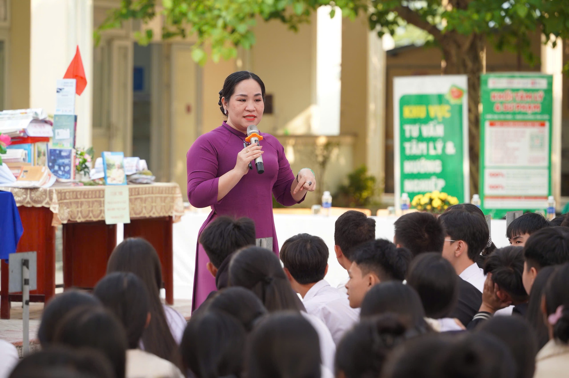 Với chủ đề “Sức khỏe tinh thần tại trường học - Nhận diện và ứng phó rủi ro trong kỷ nguyên số”, tại chương trình, đông đảo giáo viên cùng học sinh THPT và phụ huynh đã được trực tiếp trao đổi và giải đáp các tình huống tâm lý thực tế được trực tiếp dẫn dắt và chuyển tải bởi TS. Tô Nhi A, chuyên gia tâm lý, giảng viên Trường Đại học Luật Thành phố Hồ Chí Minh, kiêm cố vấn truyền thông khối Tâm lý và Sư phạm của Trường Đại học Đông Á.