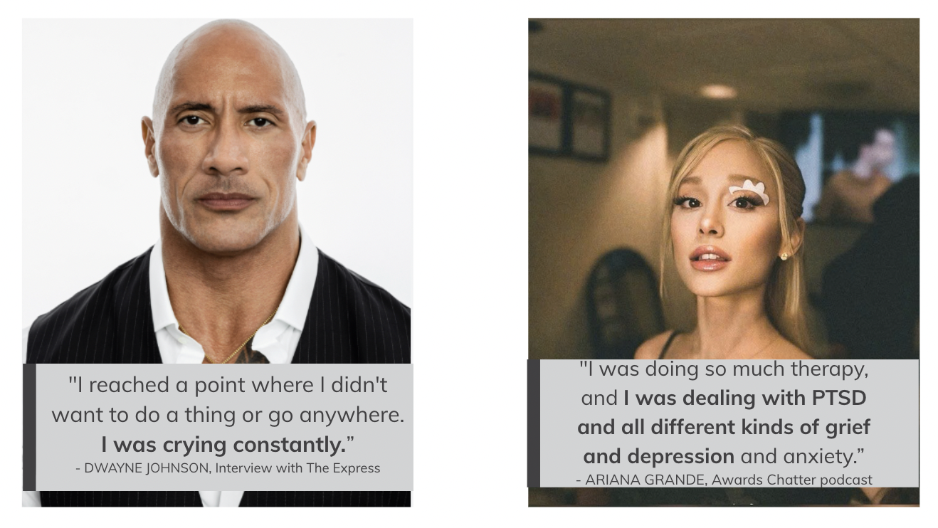 Dwayne Johnson và Ariana Grande chia sẻ về vấn đề tâm lý của bản thân